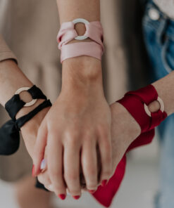 OLLA’s silk ribbon bracelet “LOVE” consist of two parts – a silk ribbon and a message-engraved metal ring. The silk ribbon bracelet is packaged in a chic gift box.