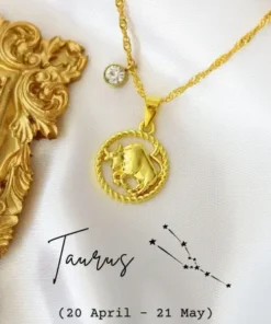 This unique zodiac necklace is made of 18 karat yellow gold plated copper with cubic zirconia inlaid on the birthstone charm (Aries, Taurus, Gemini, Cancer, Leo, Virgo, Libra, Scorpio, Sagittarius, Capricorn Aquarius and Pisces).